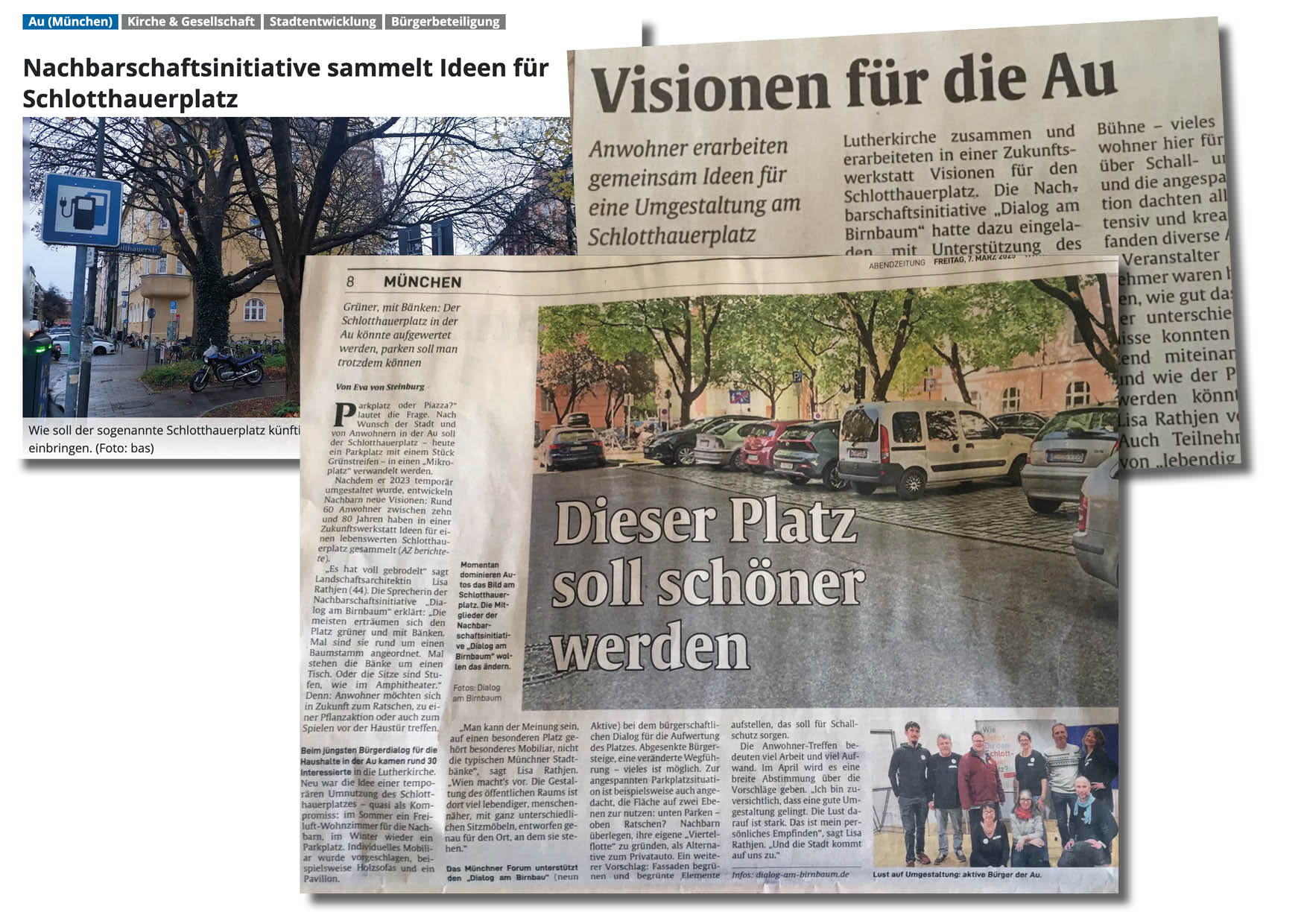 “Visionen für die Au. Anwohner erarbeiten Ideen für eine Umgestaltung am Schlotthauerplatz.”